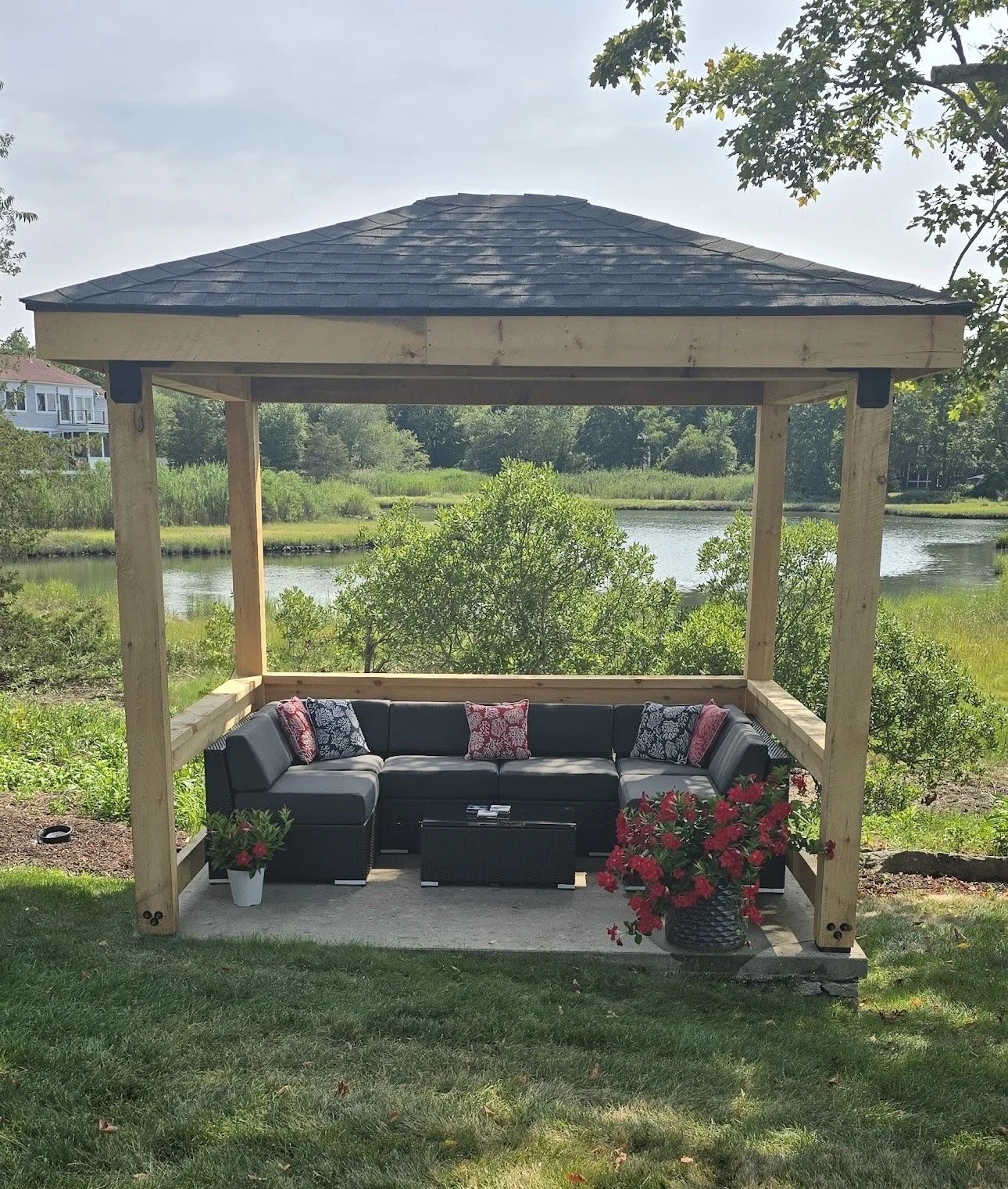 — Former client via Google Reviews“Todd recently built what I refer to as our ‘mini pavilion’. Constructed of rough sawn pine, it is approximately 9 × 12 and sits on a concrete and stone foundation overlooking Pickford cove to the West and a tranquil salt pond to the South. It is our new oasis to escape the intense summer sun, enjoying cooler breezes off the water. Couldn’t wait to purchase furniture to start enjoying our new outdoor spot immediately.. thank you Todd!!”